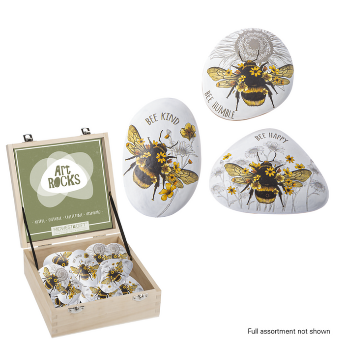 Includes 1 Ganz : Bee Art Rock in assortment at random. Specific style/color cannot be chosen. If you would like a specific style, please enter it in the notes section of your cart and we will do our best to accommodate!