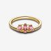 Let your inner light shine with the enchanting Pandora Disney Princess Rapunzel Tiara Ring. Inspired by Rapunzel's adventurous spirit and magical story, this stunning ring features a delicate tiara design in 14k gold-plated metal, adorned with sparkling pink stones and shimmering cubic zirconia along the band.
