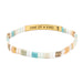 Share good intentions with our sleek Japanese glass Miyuki Scout Curated Wears One Of A Kind bracelet. It has playful combinations of matte and pearlescent beads that are strung together with positive and empowering messages. Each bracelet is one of a kind, just like you.