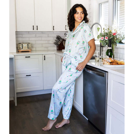 View full detailsDM Merchandising : Hello Mello Satin Pajama Top - Boots & Bubbles