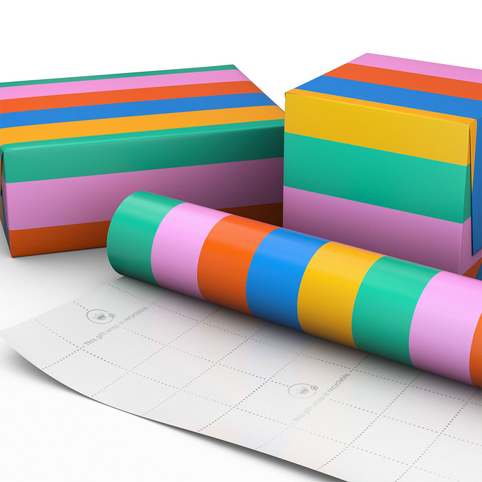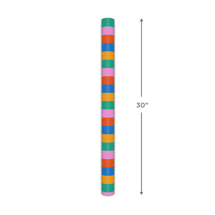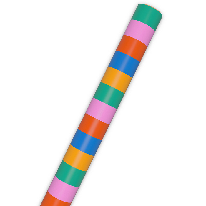 Make every color their new favorite with this bold gift wrap featuring wide stripes in a rainbow of shades.