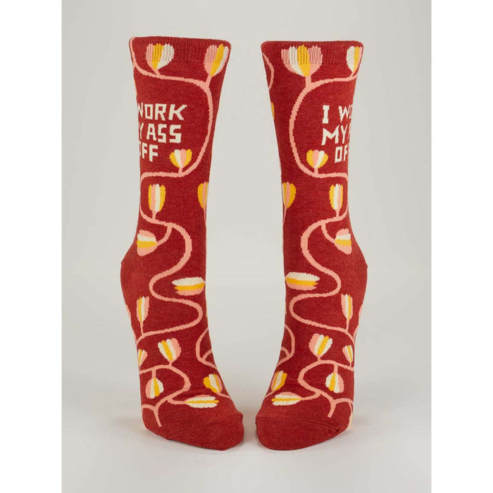 Blue Q Women's Crew Socks - Ā I Work My Ass Off are an excellent gift for validating the efforts of family, friends, or co-workers. With artwork by Martha Rich, the beautifully vibrant flowers ensure that nobody will overlook your efforts.