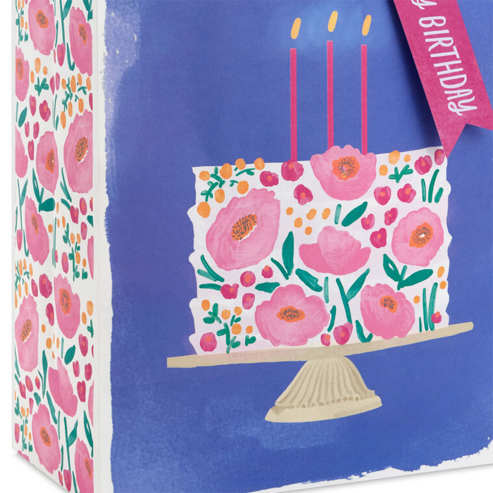 Hallmark : 13" Floral Cake on Blue Large Birthday Gift Bag