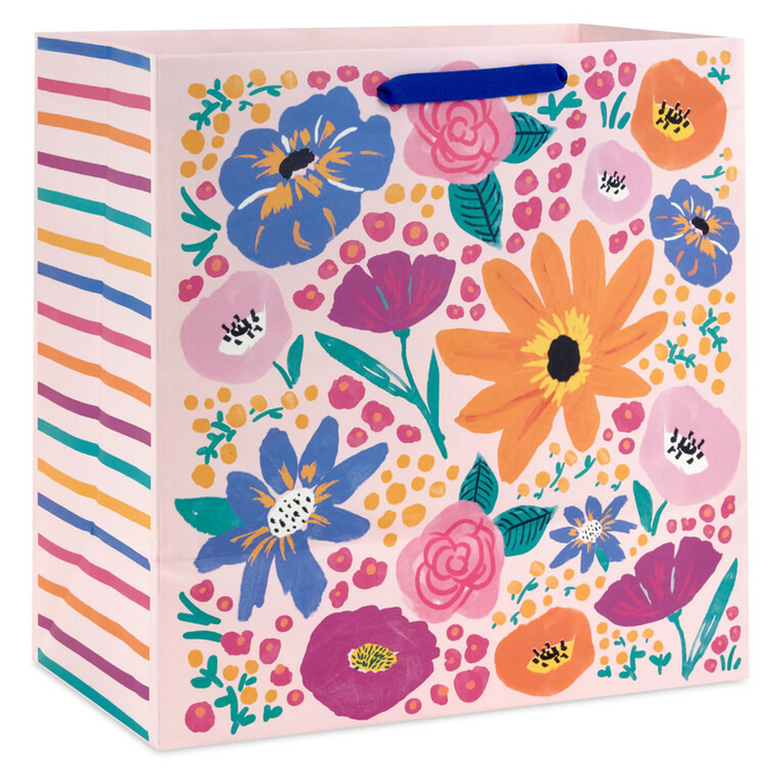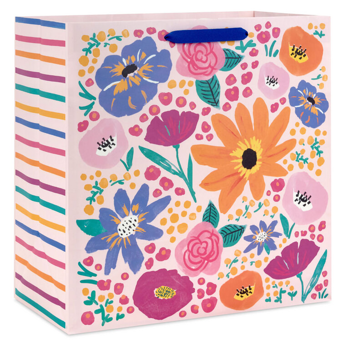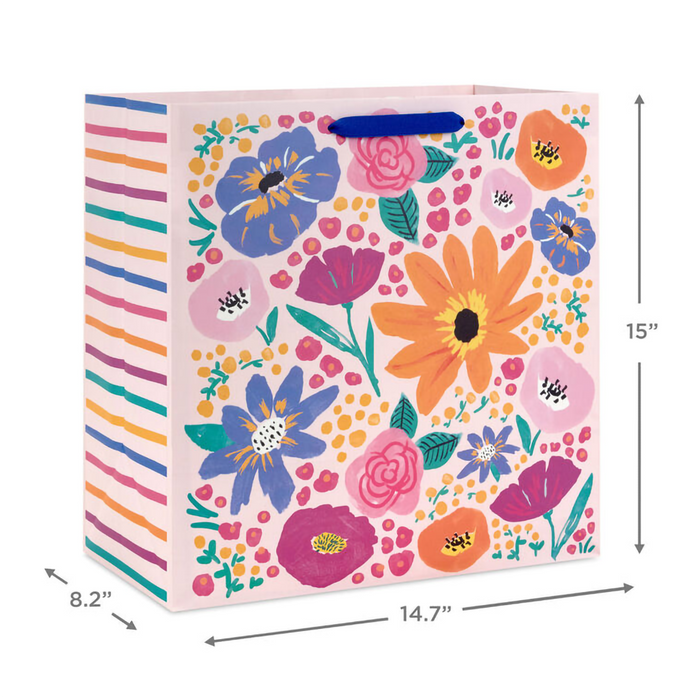Give a gift that's a work of art in this pink gift bag that will capture their imagination with its array of beautiful florals. Extra-deep gift bag features an all-over floral design of abstract blooms in orange, blue, purple and green. Perfect for her birthday, Mother's Day, Valentine's Day, retirement or graduation.