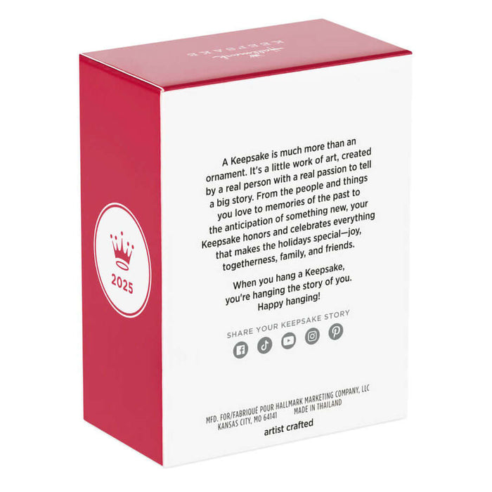Celebrate your perfect match with this charming 2025 Keepsake ornament from Hallmark. Featuring a festive red and gold matchbook design with classic lettering and heart-accented matches, it’s a heartfelt gift that shines on Christmas, Valentine’s Day, or anniversaries.