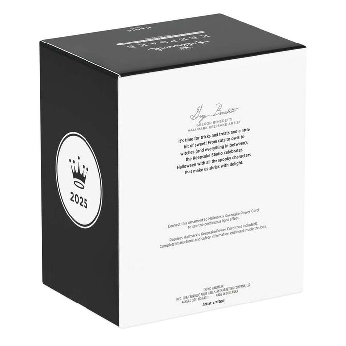 - Battery/Power source: Requires Hallmark's Keepsake Power Cord (sold separately). No batteries necessary.