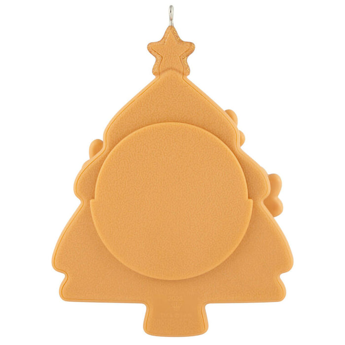 Celebrate your furry friend's first Christmas with this charming photo frame ornament. Featuring a frosted cookie tree design adorned with paw-shaped treats and festive sprinkles, it includes a special 2025 keepsake message.