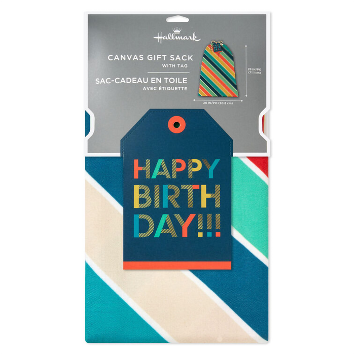 Hallmark : 28" Bold Diagonal Stripes Birthday Canvas Gift Sack With Gift Tag