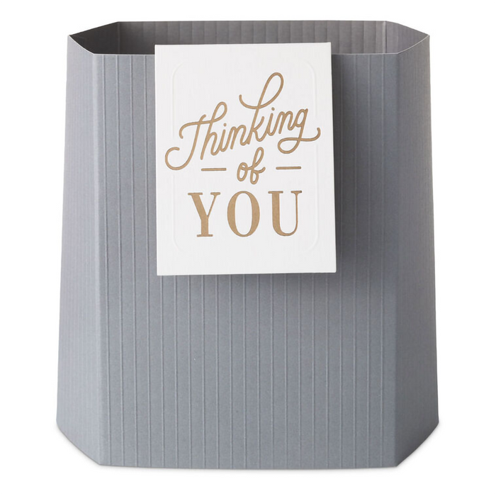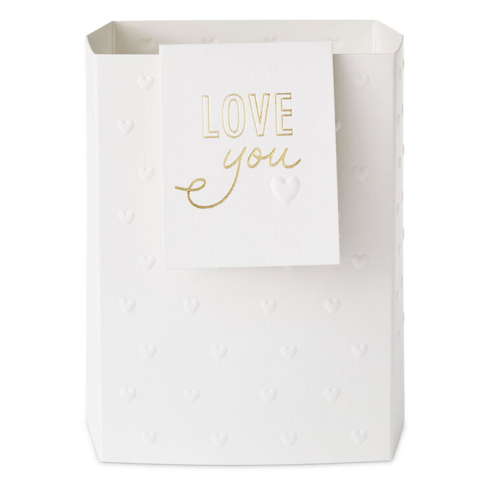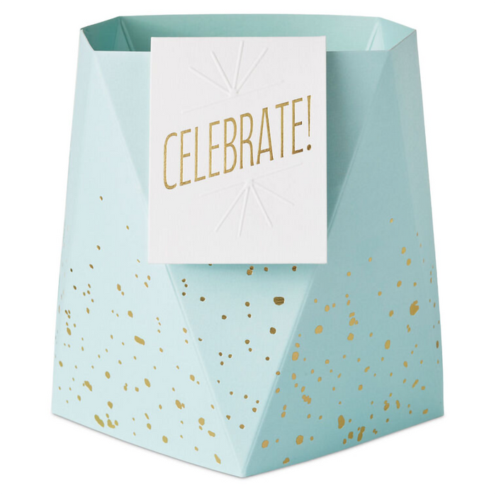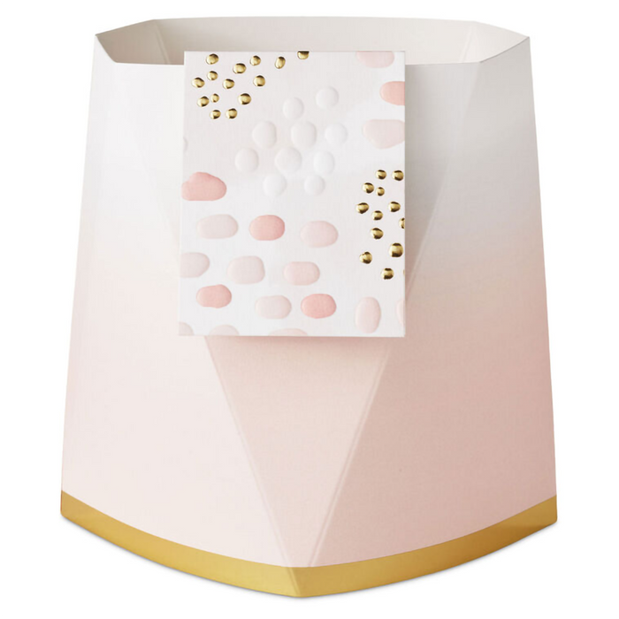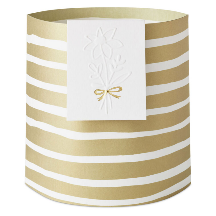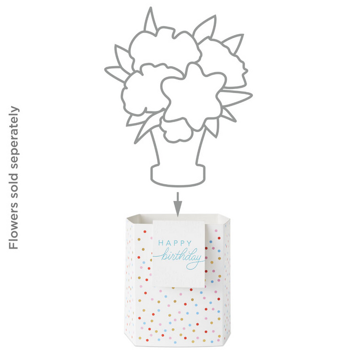 Make their day with a Hallmark Paper Wonder Build-a-Bouquet! Featuring shiny gold polka dots on a white background and a coordinating blank mini card with embossed dots and metallic gold trim, this pop-up vase pairs with our 3D paper plants or flower bouquets (sold separately) to create a customized arrangement perfect for birthdays, anniversaries, baby or bridal showers, Valentine's Day, Mother's Day, get well, graduation or any occasion. Just choose a vase, pick your plant or flowers, and mail or hand deliver to brighten any day! Pop-up paper vase with foil accents and attached mini card features hook and loop fasteners inside to secure a 3D paper flower bouquet or plant (sold separately). Folds flat for easy assembly and storage.