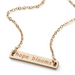 Enjoy wearing a reminder of your faith every day with this pretty gold metal necklace with an inscription on the horizontal bar pendant. The lovely necklace bearing an inspirational message makes a sweet present for a friend's birthday or a lovely gift for a religious event—like a daughter's First Communion. The inscribed bar pendant necklace comes in a gift box for easy wrapping and makes a great choice for a family member or friend.