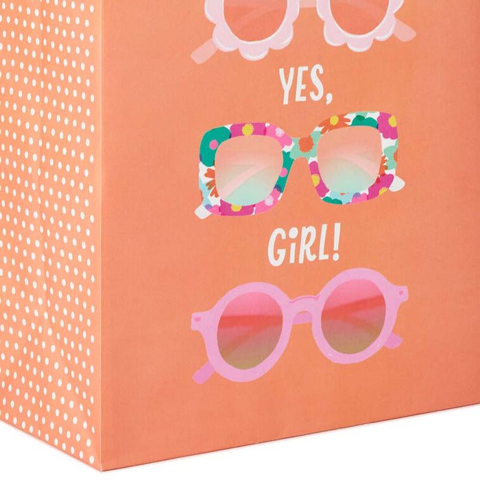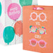 Brighten any birthday celebration with this cheerful 2-pack gift bag bundle featuring playful balloon prints and stylish sunglasses designs. The XL bag showcases colorful pink, green, orange, and floral balloons on a crisp white background, while the large bag highlights three trendy sunglass styles with a positive message for her.