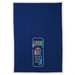 - Dark blue tea towel features a fun message in colorful embroidered lettering and a white border.
