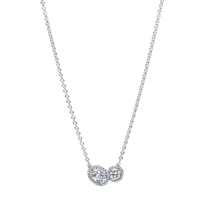 Celebrate the beauty of connection with the Double Halo Jewelry Giftset. This beautiful sterling silver set includes a collier necklace and matching stud earrings. Each piece has two sparkling stonesāone round and one ovalāsurrounded by a pavĆ© halo. The design clearly shows the bond between two souls.
