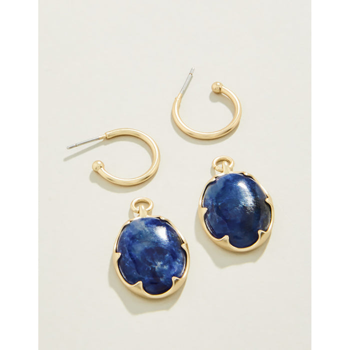 Experience a range of emotions with Spartina 449 Blue Coralie Earrings. A stunning natural blue stone is expertly placed in a 18kt matte gold plated setting. Ensuring you won't feel blue wearing these earrings. For added versatility the drop can be removed, transforming them into chic gold hoops.