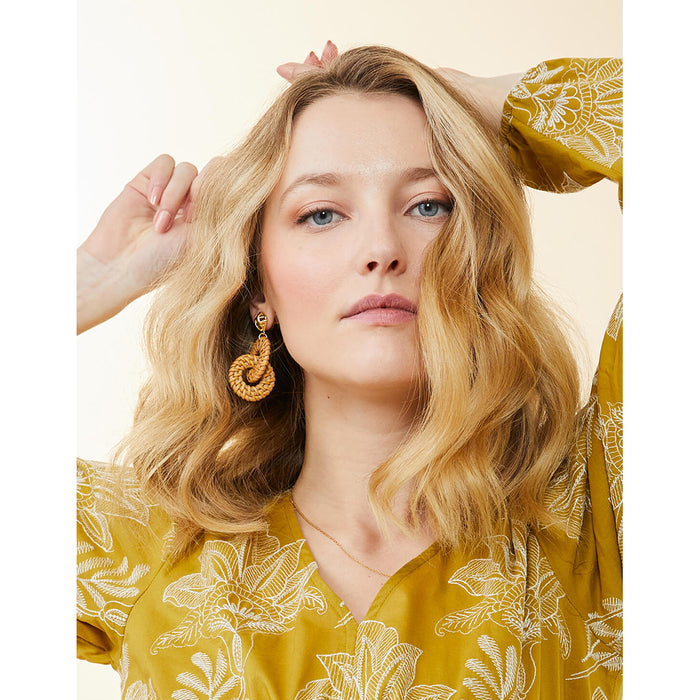 These earrings are perfect for adding a touch of nature-inspired charm to any outfit. The intricate cane pattern adds texture and dimension, while the wicker rings provide a unique and unexpected twist.