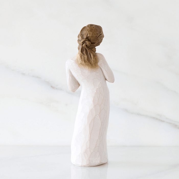 Willow Tree Here for You Figurine is a gentle expression of comfort and care. This elegant hand-painted resin figure features a woman with her hands gently placed over her heart, a universal gesture of empathy, support, and emotional connection.